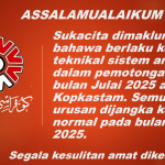 Assalammualaikum, salam sejahtera dan salam koperasi Sukacita dimaklumkan bahawa berlaku kesilapan teknikal sistem angkasa dalam pemotongan gaji bulan Julai 2025